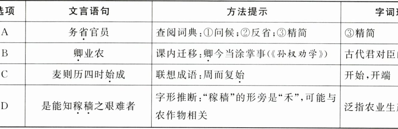 |D|是能知稼穑之艰难者|字形推断:“稼穑”的形旁是“禾”,可能与农作物相关|泛指农业生产|