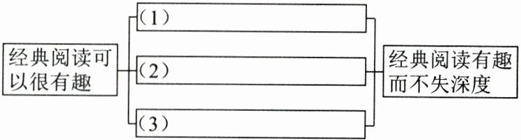 5.(1)数智技术,让经典阅读“潮”起来 (2)特色活动,让经典阅读“热”起来 (3)形式创新,让经典阅读“乐”起来 6. B 7. 原句好。运用拟人的修辞手法和引用论证,生动形象地论证了社会有识之士在推动经典阅读方面所做的努力,富有文学色彩,体现了议论文语言的生动性。 8. 第③段。链接材料举例论证了“数智技术,让经典阅读‘潮’起来”的观点,与第③段上海图书馆的事例的论证方向是一致的,因而放在第③段更恰当。
