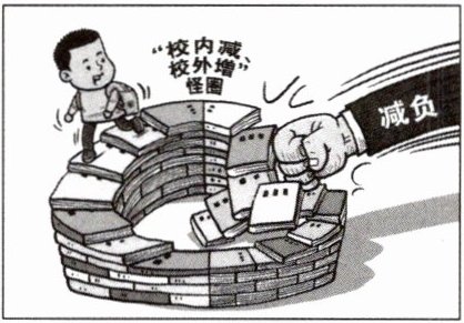 (2)内容:漫画主体部分是一个由各种书围成的圈,一个学生背着书包正在书圈上行走,旁边一个名为“减负”的硕大的拳头正用力打破这个书圈,书圈上写着“‘校内减、校外增’怪圈”。 寓意:说明国家正积极落实“双减”政策。(国家正积极打破“校内减、校外增”的“假‘双减’”怪圈)