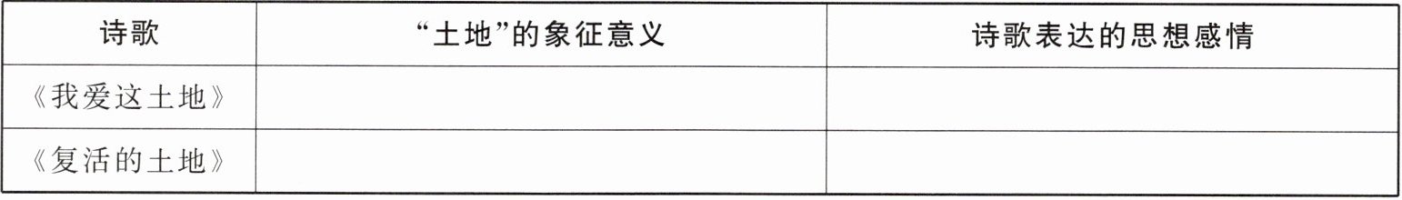 5. 20 世纪 30 年代,艾青诗歌中的主要意象之一是“土地”。比较阅读下面两首诗歌(节选),填写表格。