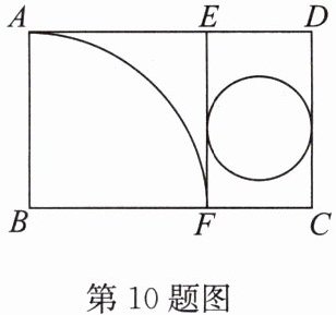 10. 如图,在矩形纸片 $ABCD$ 中,$AD = 6$ cm,把它分割成正方形纸片 $ABFE$ 和矩形纸片 $EFCD$,分别裁出扇形 $ABF$ 和半径最大的圆,恰好能作为一个圆锥的侧面和底面.