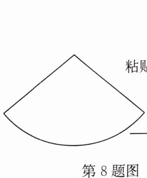 8. (2023·自贡)如图,小珍同学用半径为 8 cm,圆心角为 $100^{\circ}$ 的扇形纸片制作一个底面半径为 2 cm 的圆锥侧面,则圆锥上粘贴部分的面积是______ $cm^{2}$.