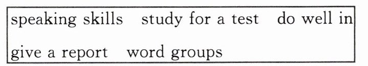 11. study for a test 12. word groups 13. give a report 14. does well in 15. speaking skills
