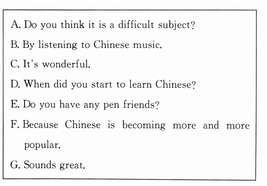 根据对话内容,从方框内的选项中选出能填入空白处的最佳选项。选项中有两项为多余选项。