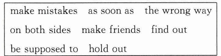 II. 16. make mistakes 17. held out 18. are supposed to 19. make friends 20. as soon as 21. on both sides 22. the wrong way 23. found out