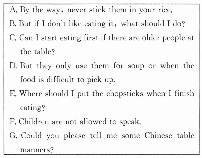 根据对话内容,从方框内的选项中选出能填入空白处的最佳选项。选项中有两项为多余选项。