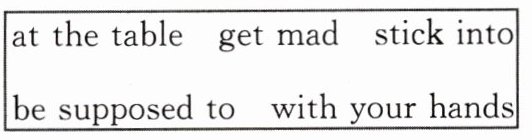 6. aren't supposed to 7. with your hands 8. get mad 9. stuck into 10. at the table
