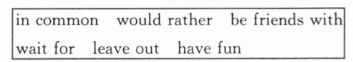 11. are friends with 12. waiting for 13. would rather 14. have fun 15. left out 16. in common