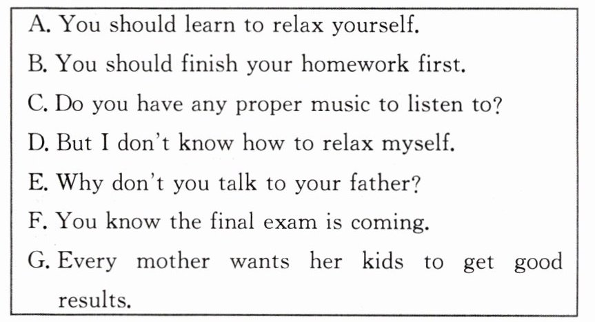 B: My mother always tells me to study hard and get good grades. I'm afraid I can't.
