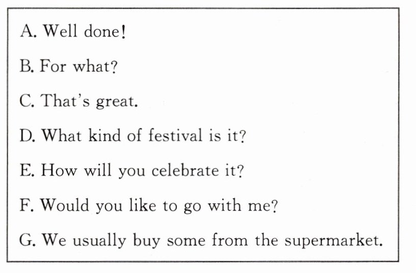, I bring an umbrella to protect myself from the sunlight. (luck)7. On the Mid - Autumn Festival, the families get together to eat delicious