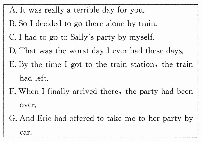 11. gave me a lift 12. had rushed out of 13. didn't go off 14. By the time 15. put on