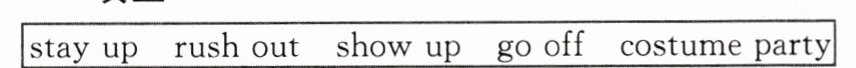 6. goes off 7. rushed out 8. costume party 9. stayed up 10. show up