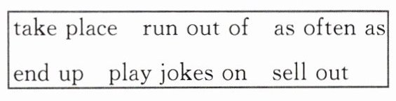 11. run out of 12. ended up 13. were sold out 14. play jokes on 15. taken place 16. as often as