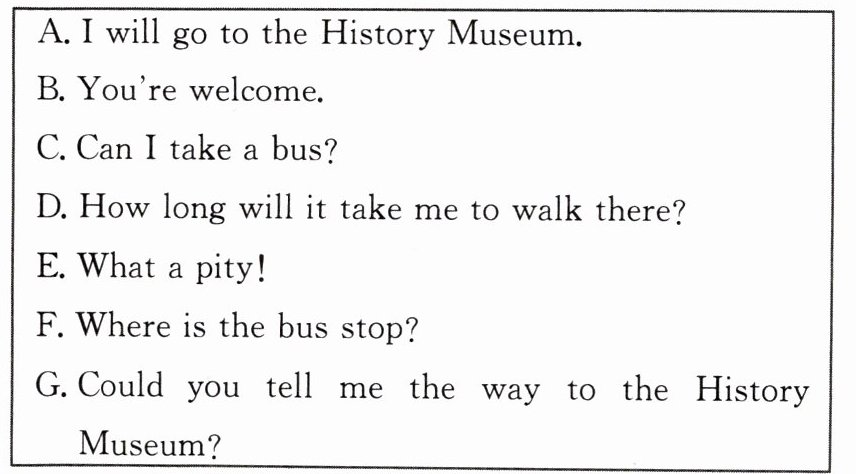 根据对话内容,从方框内的选项中选出能填入空白处的最佳选项。选项中有两项为多余选项。