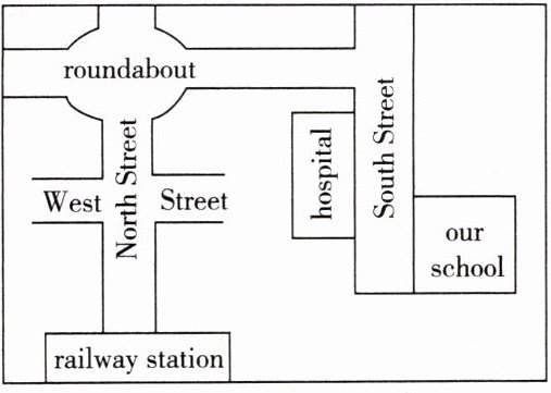 One possible version:Dear Ellen, I am excited to hear that you're coming to our school. Let me tell you how to get there. When you get off the train,please walk out of the railway station and go along North Street until you see the roundabout ahead. Go around the roundabout into South Street. Walk straight down the street and soon you will see a hospital on your right. Walk on till you reach the end of the street. You'll find our school on your left. Welcome to our school! I'm looking forward to your coming.Yours,Wang Kai