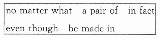11. in fact 12. No matter what 13. are made in 14. a pair of 15. even though