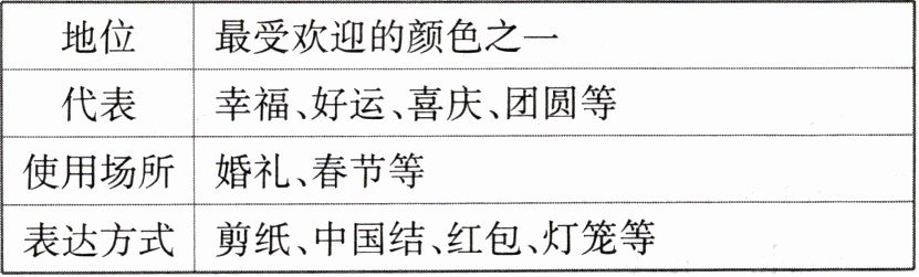 参考词汇:婚礼 wedding;中国结 Chinese knot;红包 red packet;代表 stand for