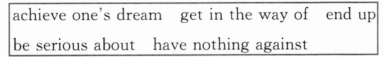 11. gets in the way of 12. achieve your dream 13. end up 14. to be serious about 15. has nothing against