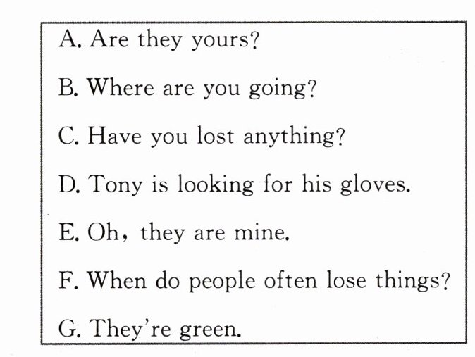My aunt gave them to me as a birthday present.A: Look! I found the gloves on the floor just now. 24.