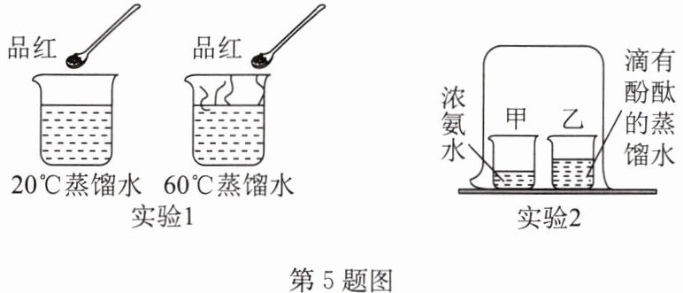 )A.实验1,品红在两个烧杯中的扩散速度相同