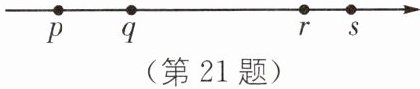 21. 数形结合思想 如图表示数轴上四个点的位置关系,且它们表示的数分别为p,q,r,s.若$|p-r|= 10$,$|p-s|= 12$,$|q-s|= 9$,求$|q-r|$的值.