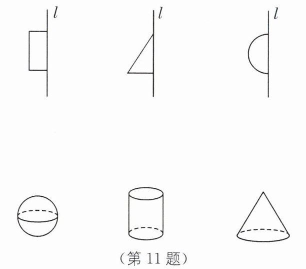 11. 如图所示的图形绕直线l旋转一周后,会得到什么立体图形? 用线连一连.