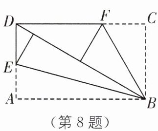 8. (2025·黑龙江绥化海伦期末)如图,将一张长方形纸片 ABCD 分别沿着 BE,BF 折叠,使边 AB,CB 均落在 BD 上,得到折痕 BE,BF,则∠EBF 等于(