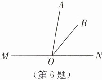 6. 方程思想 如图,点 O 在直线 MN 上,过点 O 作射线 OA 和 OB,已知∠MOA= 2∠BON,∠BON 比∠AOB 大 20°,求∠MOA 和∠AOB 的度数.
