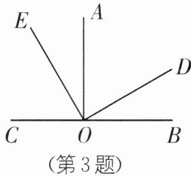 3. 如图,点 C,O,B 在同一条直线上,∠AOB= 90°,∠AOE= ∠DOB,则下列结论:①∠EOD= 90°;②∠COE= ∠AOD;③∠COE= ∠DOB;④∠COE+∠BOD= 90°;⑤∠COE+∠AOD= 90°. 其中正确的个数是(