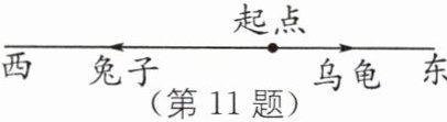11. 动物王国里举行了一场乌龟与兔子的竞走比赛,所走路线及方向如图所示,在同一时间内,兔子向西走了20 m,乌龟向东走了1 m,狐狸宣布乌龟获胜,其理由是:向西为负,向东为正,根据正数大于一切负数的原理:$+1 > -20$,表明同一时间里乌龟所走的路程大于兔子所走的路程.你认为狐狸的说法有道理吗?说说你的意见.