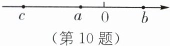 10. 有理数a,b,c在数轴上的对应点的位置如图所示,用“>”或“<”比较出下列式子与“0”的大小.