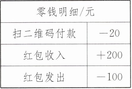 7. 如表是某用户的零钱明细,按照这种表示方法,“+60”表示的是(