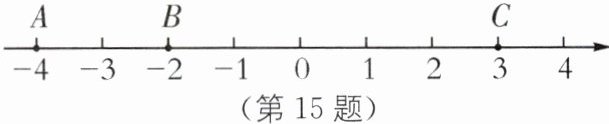 15. 如图,在数轴上有三个点A,B,C,请根据图回答下列问题: