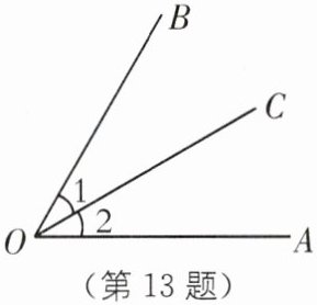 如图,OC是∠AOB的平分线,∠1= ∠2,但它们不是对顶角.