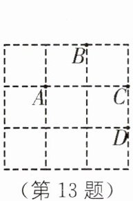 13. 如图,在 3×3 的正方形网格中有四个格点 A,B,C,D,以其中一点为原点,网格线所在直线为坐标轴,建立平面直角坐标系,使其余三个点中存在两个点关于一条坐标轴对称,则原点是(
