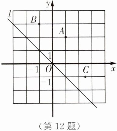 12. 中考新考法 操作探究 如图,在平面直角坐标系中,已知点 A(1,2),B(-1,3),C(2.5,-1),直线 l 是第二、四象限的角平分线.
