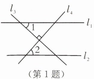 1. 如图,直线$l_{1}// l_{2}$,$l_{3}\perp l_{4}$,$\angle 1= 42^{\circ}$,那么$\angle 2$的度数是( ).
