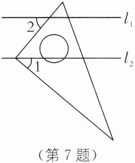 7. (2025·江苏苏州相城区期末)如图,直线$l_{1}// l_{2}$,将直角三角板按如图方式放置,直角顶点在$l_{2}$上,若$\angle 1= 40^{\circ}$,则$\angle 2= $______.