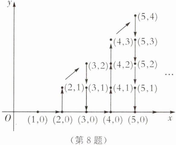 8. 中考新考法 探索规律 (2025·山东淄博高新区期末)如图,在平面直角坐标系中,有若干个整数点,其顺序按图中“→”方向排列,如(1,0),(2,0),(2,1),(3,2),(3,1),(3,0),(4,0),根据这个规律探索可得第 2025 个点的坐标是______
