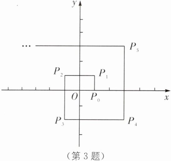 3. (2025·安徽安庆期中)如图,在平面直角坐标系中,设一点 M 自 P₀(1,0)处向上运动 1 个单位长度至$ P_1(1,1),$然后向左运动 2 个单位长度至$ P_2$处,再向下运动 3 个单位长度至$ P_3$处,再向右运动 4 个单位长度至$ P_4$处,再向上运动 5 个单位长度至$ P_5$处,…,如此继续运动下去,设 Pₙ(xₙ,yₙ),n= 1,2,3,…,