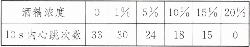 7. 酗酒对人体有害吗?下表是某实验小组探究不同浓度的酒精对某种水蚤心率影响的实验数据(心率是心脏每分钟跳动的次数,因水蚤心跳太快,为减少误差,实验中计算10秒内心跳次数).根据表格,下列结论错误的是(