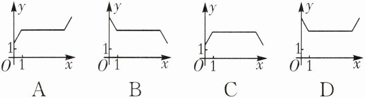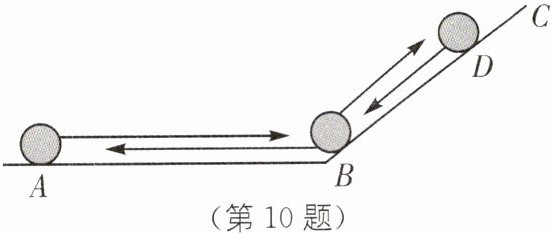10. 新情境 轨道运动 小球沿着如图所示的轨道(由光滑的水平轨道AB和斜坡轨道BC组成)运动,从点A开始到点D再返回到点A.小球在AB上做匀速运动,下列表示小球运动的路程y随着时间x变化的图象中,合理的是(