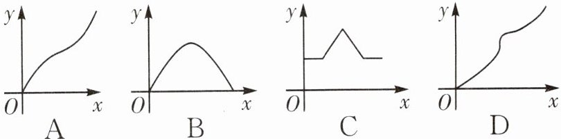 A [解析]由题意可知,小球的路程由0开始,随时间x的增大而增大,故选项C不合题意;小球从A运动到B时,速度比较快,图象较陡;从B到D时,速度较慢,图象变缓;从D到A时,速度变快,图象变陡,故选项B,D不合题意,选项A符合题意.故选A.
