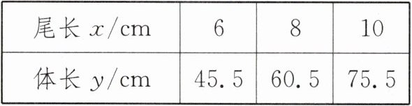 4.(2024·山西中考)生物学研究表明,某种蛇在一定生长阶段,其体长 y(cm)是尾长 x(cm)的一次函数,部分数据如下表所示,则 y 与 x 之间的关系式为(