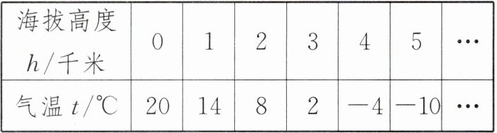 |气温t/°C|20|14|8|2|-4|-10|…|