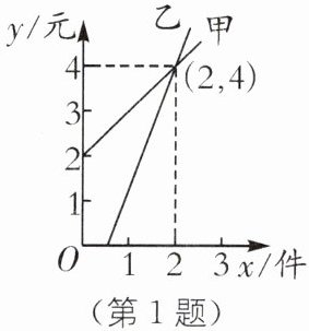 ).A.售 2 件时,甲、乙两家的售价相同