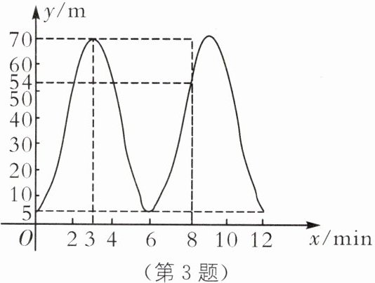 3. 摩天轮可抽象成一个圆,圆上一点离地面的高度 y(m)与旋转时间 x(min)之间的关系如图所示.