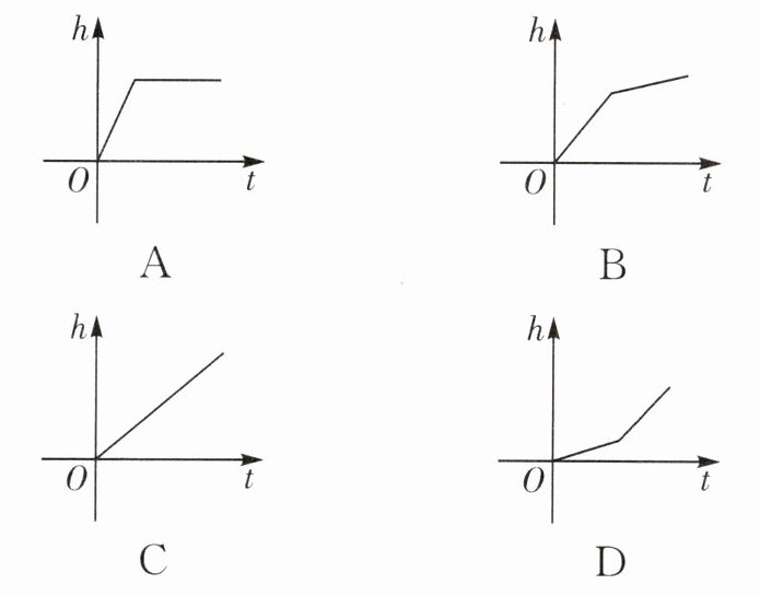 B [解析]根据题意和图形的形状,可知水的深度h与时间t之间的关系分为两段,先快后慢. 故选 B.
