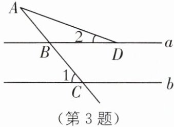 3.(2025·广东深圳福田区期末)如图,直线a//b,射线 AB 分别交直线 a,b 于点 B,C,点 D 在直线 a 上,若∠A= 30°,∠1= 50°,则∠2 的度数为(