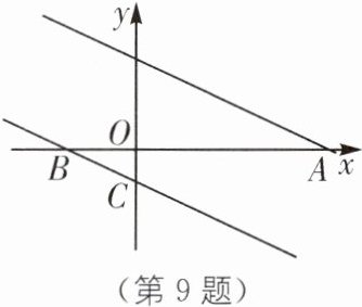 9.(2024·四川成都武侯区期末)如图,直线$l:y= ax+3交x轴于点A(6,0)$,将直线$l$向下平移4个单位长度,得到的直线分别交$x$轴、$y轴于点B,C$.